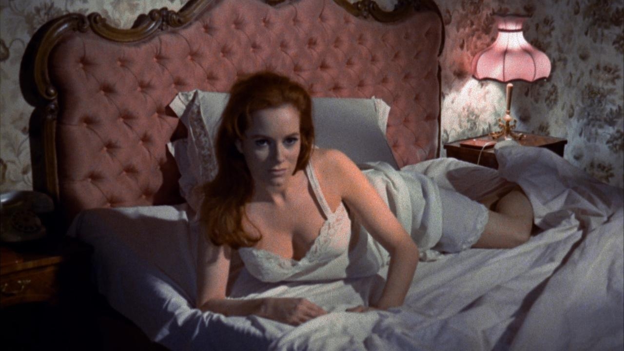In 1968 31-year-old Luciana was at the height of her physical prowess and at her utmost desirable. Like Graziella Granata, Rosalba Neri and Luciana Gilli, Paluzzi was a classical curvy Italian beauty and a very patrician one at that. While her features were more sculptured (very much as her contemporaries Daliah Lavi, Marisa Mell, and Diana Lorys) Paluzzi was blessed with an absolute spectacular body. No wonder that Paluzzi’s picture eventually ended up on the desk of Albert R. “Cubby” Broccoli. While Edwige Fenech and Rosalba Neri (to name the most prominent two) would reinvent themselves as wanton sex kittens at the dawn of the following decade Luciana never disrobed for just anybody. On the first glance it appears her role as a red hot sexpot is mostly decorative but nothing could be further from the truth. Luciana wields some dizzying cleavage, gloriously fills out every of her many robes, and sports some incredibly skimpy lingerie. Her brown cowgirl suit and the frilly translucent white nightgown are particular favourites among her many costumes. Ever since Thunderball (1965) Paluzzi was never shy about doing nudity. Admittedly, in the fourth Bond film her nudity was implied rather than shown but in A Black Veil For Lisa Luciana lets it all hang out – and it is ever glorious. A Black Veil For Lisa may not have been remembered for much, Lucy’s nudity has certainly aided in ensuring its longevity. If not for her A Black Veil For Lisa wouldn’t have endured the way that it has. While it is no classic, it’s historic for being somewhat of a quintessential evolutionary link between the German krimi and the earliest of Italian gialli while not strictly adhering to the rules of either.