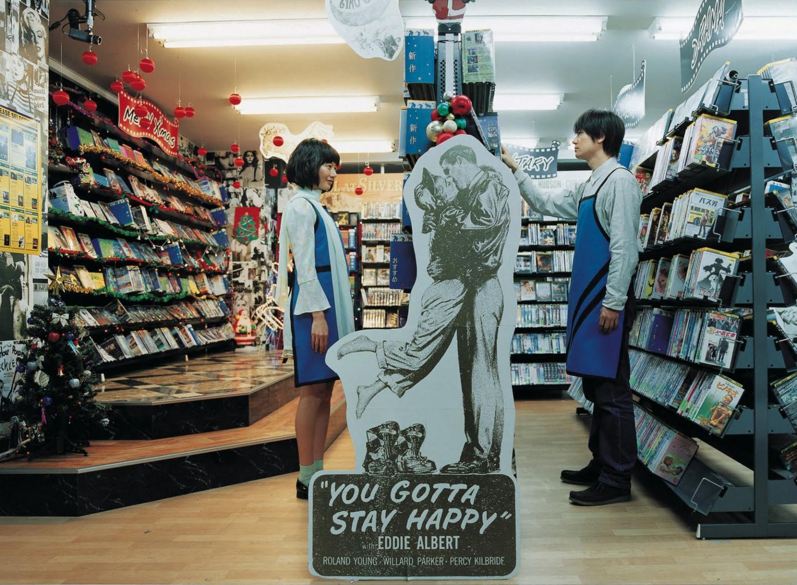 On one of her daily excursions into the city Nozumi is able to parlay her newfound humanity into a job at the Cinema Circus video rental store. There she enlivens the uneventful life of despondent clerk Junichi (Arata Iura, as Arata) and soon the two become inseperatable. Hanging decorations one day Nozumi punctures herself, falls down and starts to deflate. Junichi (who is not in the slightest moved by the fact that his co-worker is an inflatable doll) nonchalantly repairs her injuries and sees to it that she’s reinflated and fully functioning again. All of this, of course, greatly arouses Nozumi. During one of their dates Nozumi meets little Moe (Miu Naraki) (Moe, of course, being an opaque otaku term meaning, amongst other things, "cute", "huggable", or "endearing") who’s celebrating her birthday in a restaurant with her father (Tomomi Maruyama). One day a greatly distracted Hideo visits the store but fails to recognize his Air Doll. Store owner Samezu (Ryô Iwamatsu) accuses Nozumi of having an affair behind poor Junichi’s back. Back at the apartment Nozumi confronts Hideo with her blossoming humanity but he coldly rejects her. Not only has Hideo rejected her, she also finds out that she was callously replaced with a younger model.