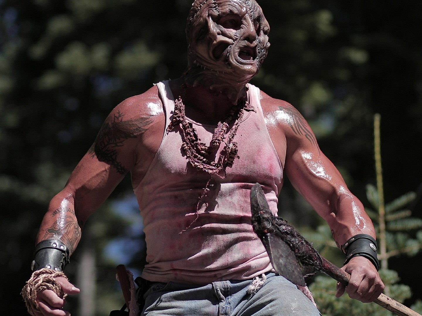 One day military contractor Dragonfly (John Ozuna) makes his acquaintance with Elizabeth (Eva Hamilton) in a local wateringhole. Elizabeth has been investigating the disappearance of a number of nubile women in the California Redwood forests. She believes that the women are brought there by a band of human traffickers who harvest their organs for interested third-parties. To get to said organs and body parts they let the women loose in the woodlands where Sallos (Tony Jackson) dwells. Sallos is a deranged homicidal maniac sporting a mask and a barbwired axe with a known affinity for bodily dismemberment and his quick, brutal methods of execution. After negotiating terms of the contract Dragonfly sets out to find Sallos and any survivors.