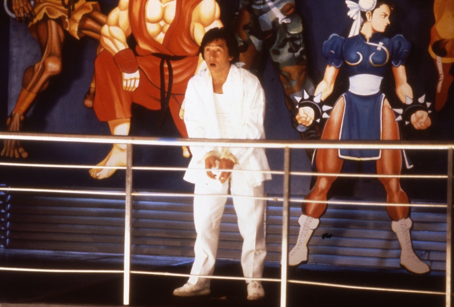 The story, as documented by chroniclers of the day, is that director/producer Jing Wong was aware of the success of Street Fighter II: The World Warrior (1991) in arcades worldwide. City Hunter, at least during the earliest days of production, was going to be a manga adaptation exclusively. A fierce bidding war for the Street Fighter copyrights ensued wherein Chan would emerge as victorious. Wong had long expressed his desire to adapt the game for the big screen and Chan refused to grant him the license. It was 1993 (a marquee year for arcade beat ‘em ups) and Wong obviously wanted to capitalize on that with a Street Figher movie. Chan not wanting the relinquish the licensing, understandably, led to friction and the two frequently engaged in on-set shouting matches midway through production. In a bitter dispute Jackie Chan would denounce City Hunter and personally attack Jing Wong in the specialized press. Wong for his part used whatever pre-production material he had on hand for the improvised sci-fi comedy Future Cops (1993) and took a very thinly-veiled sweep at his former associate and star in the form of High Risk (1995), a Die Hard (1988) imitation very much like City Hunter. As these things go, City Hunter itself was plagiarized for the amiable Madam City Hunter (1993) (with little miss dynamite, Cynthia Khan) as it was a clear derivate of both that and Yes, Madam! (1985) (with Michelle Yeoh and Cynthia Rothrock) and Super Lady Cop (1993) that came replete with a Taiwan-exclusive “Khan as Chun-Li” in a comedic Street Fighter setpiece. Those hoping to see Joey Wong Cho-Yin or Chingmy Yau Suk-Ching donning Chun-Li's famous blue qipao will leave sorely disappointed. Chingmy won’t even be shaking her cute little rump.