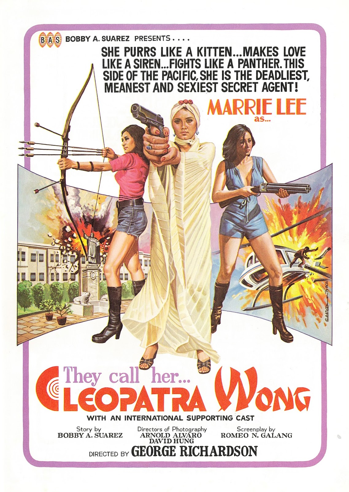 It’s not without a sense of irony that Singapore’s most enduring cultural popular export was the product of a Filipino director. Cleopatra Wong was conceived by Bobby A. Suarez and writer/director Romeo N. Galang as a response to the different but parallell trends of James Bond, blaxploitation, HK martial arts, and the legend of Bruce Lee (even if his death was five years in the past at that point) and the two were looking to roll all of that into one. As the name would have you believe the first and most obvious influence was Tamara Dobson in/as Cleopatra Jones (1973) and its 1975 sequel. Wong was, and is, a very common surname in China and Singapore. Suarez and Galang imagined Cleopatra Wong as a mini-skirt and go-go boots wearing, gun-toting, high kicking, longbow shooting honey with a penchant for casual destruction and an insatiable sexual appetite to match. Suarez and Galang saw Cleopatra Wong as a female Bruce Lee in The Big Boss (1971), Fist of Fury (1972) and Way of the Dragon (1972). Obviously linguistic (and probably to a lesser degree, cultural) barriers made it impossible to hire Angela Mao Ying (茅瑛), an actual protégé of the late Lee. "Asia's female James Bond" is what regional press of the day called it. Whether it was circumstance, happenstance, or a bit of serendipity, but somehow they had come up with an icon of female empowerment and emancipation and something very much with the times. The American drive-ins and grindhouses had Ginger (1971), Superchick (1973), Stacey! (1973), and Double Agent 73 (1974), now Singapore had its own super agent in Cleopatra Wong. “She purrs like a kitten.. makes love like a siren... Fights like a panther. This side of the Pacific, she is the deadliest, meanest and sexiest secret agent!” thus spake the poster. This left Suarez and Galang with only one problem: they had to find Cleopatra first.