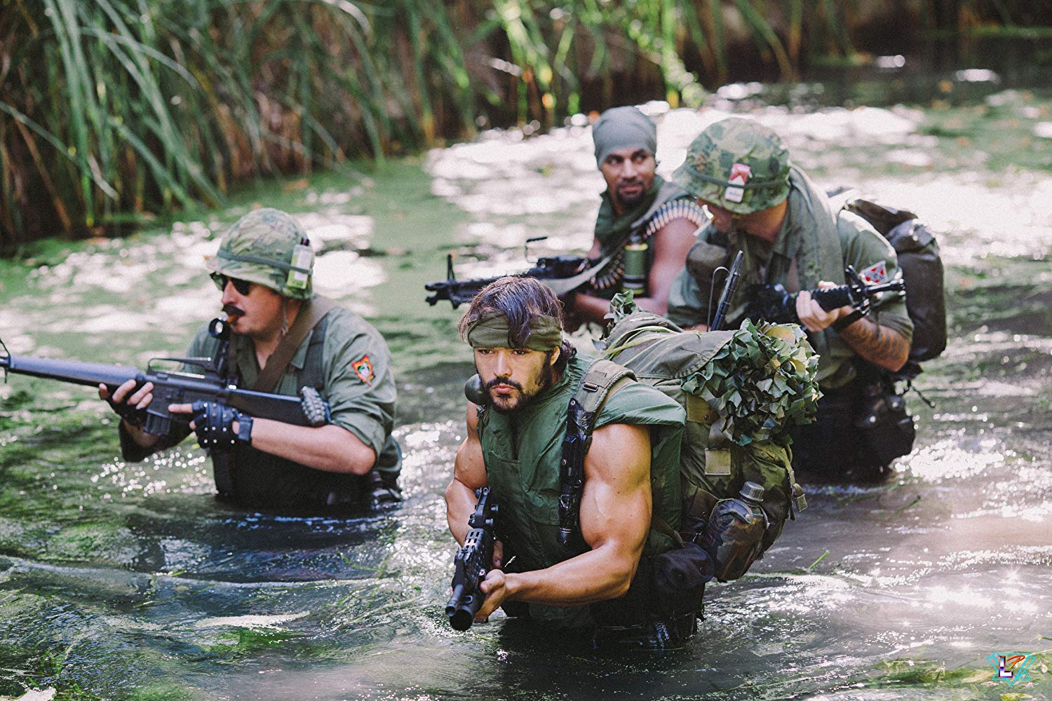 1968. Green Beret John Hunter (Eric Carlesi) and his Lizard Smokers platoon – Leeroy Hopkins (Philippe Allier), Oskar Kowalsky (Stéphane Asensio), and Curtis “Snow White” Jackson (Thémann Fagour) – are on a routine recon mission in the jungles of Vietnam. Suddenly they are ambushed by a clan of ninjas brandishing highly-advanced weaponry and led by a mysterious red kimonoed, golden-masked ninja (Antony Cinturino). Hunter and his team put up a valiant fight but end up scattered in different directions in the jungles near the Laotian border. Snow White doesn’t survive the ninjas’ surprise attack and Hopkins, injured and bleeding during the fracas, finds himself chased by velociraptors. Hopkins is certain he will die until Kowalsky appears out of the foliage in a fight to the death with the carnivorous dinosaurs. Bravely Hunter engages the the troops of brutal North Vietnamese general Yinn (Thyra Hann Phonephet) in a desperate one-man guerilla war. Outnumbered and outgunned John is taken POW by the general’s armed forces. Seeing Hunter’s natural affinity for martial arts Yinn decides to instruct John in the ways of shinobi. Yinn had one pupil before but that pupil was seduced by “the darkside.” According to Sensei Yinn, “there can be only one… Commando Ninja!”