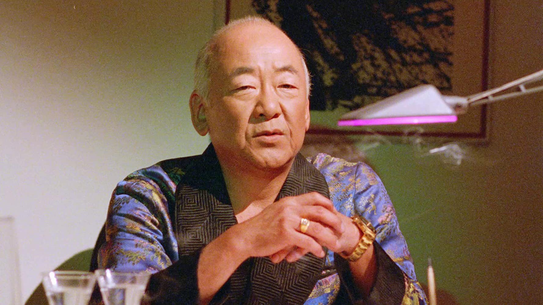 Ava Cadell – a long way from her cameo in Commando (1989) - gets an extended introductory montage that sees her squeezing into tight leather pants in nothing but a white thong-leotard. Sidaris, in his infinite wisdom and benevolence, shoots Cadell from any and every flattering angle and somehow manages to focus on more than just her big guns. Given her introduction you’d expect her to be the main villain, but nothing could be further from the truth. “I’m gonna blow their tits off,” exclaims Ava after being informed by her partner Skip (Skip Ward) that her targets have arrived on-scene, a brief chase scene later both Ava and Chip are blown to smithereens. Series regulars James Lew and Eric Chen, as head goons Lew and Chen, get blown to bits as well. Playboy Hong Kong Playmate Carolyn Liu (July 1990) follows in the footsteps Roberta Vasquez and Devin DeVazquez by playing the prerequisite hot love interest of the villain. Before Pat Morita returned as Kesuke Miyagi in The Next Karate Kid (1994), with a pre-Oscar and Golden Globe winner Hillary Swank, he was Masakana 'Kane' Kaneshiro in Andy Sidaris’ Hawaii spy action romp Do Or Die. Morita visibly enjoys playing the caricatural villain Kaneshiro, relishing in the cheesy dialogues and that he gets to give Liu an oily shiatsu massage. Kaneshiro is quite different from that good old Mr. Miyagi.