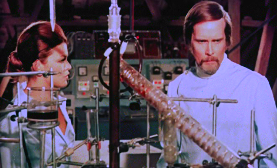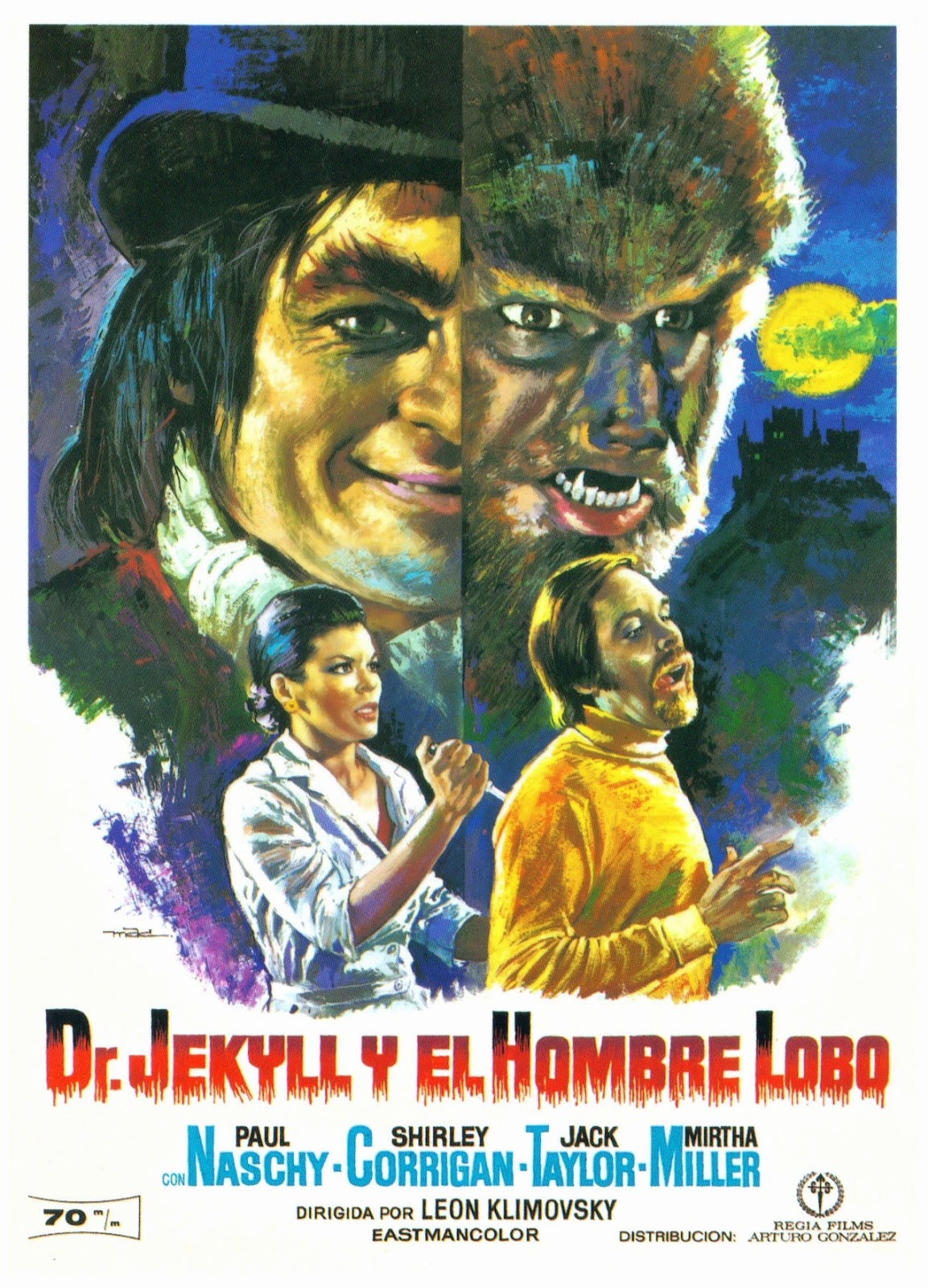 In London, Justine contacts her dear old friend Dr. Henry Jekyll (Jack Taylor), a grandson of the character from the famous 1886 Robert Louis Stevenson novel, a prominent scientist at the prestigious Biological Research Clinic. Jekyll is of the opinion that with a revised version of his father’s serum he will be able to rid Daninsky of his his wolven form by letting his latent Mr. Hyde personality, borne from the same inborn evil as his lycantropy, manifest itself. He will then be injected with an agent that purges Mr. Hyde from his being, taking the lycantropy with it. Jekyll instructs Waldemar to come to the clinic on the day of the next full moon whereupon Jekyll and his trusted protégée Sandra (Mirta Miller, as Mirtha Miller) will conduct their experimental treatment. On his way to the clinic Waldemar boards an elevator with an attractive young nurse (Marisol Delgado) which breaks down until the full moon rises.
