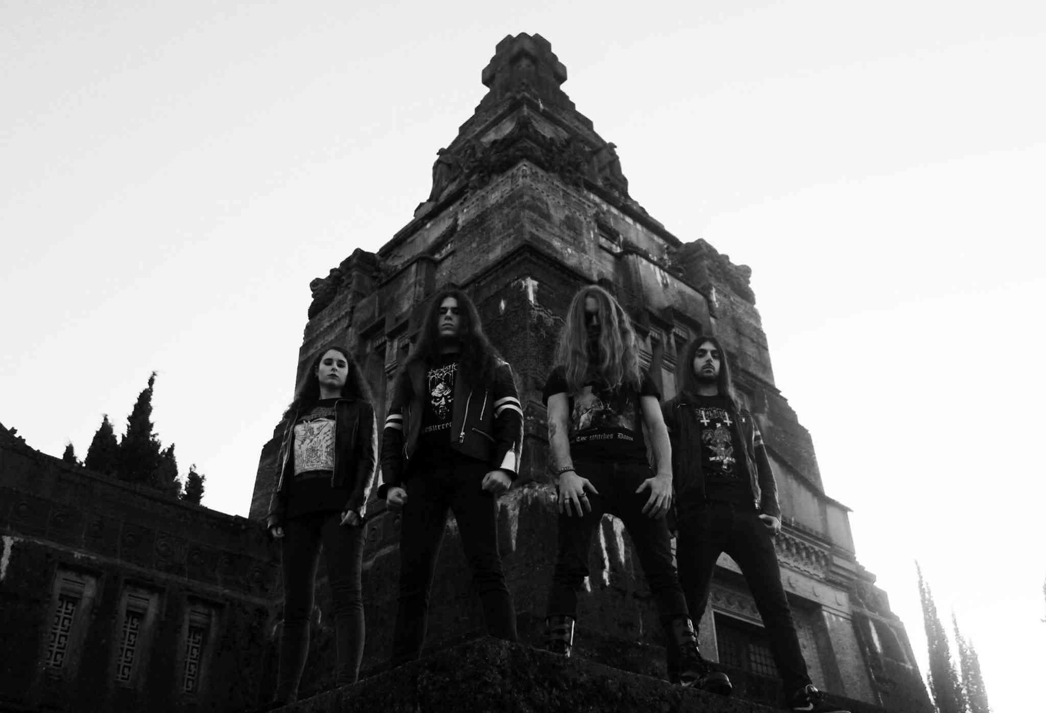 Ekpyrosis embodies pure death metal and in sheer decrepit atmosphere and all-encompassing gloominess they are only matched by late 90s (and now long defunct) Canadian studio act Darkness Eternal and Morpheus Descends. Compared to the preceding EP “Asphyxiating Devotion” leans more towards different eras of New York/Pennsylvania death metal monument Incantation than to the early Swedish scene. “Asphyxiating Devotion” combines the dense structures of “Onward to Golgotha” with the more straightforward riffing of post-“Blasphemy” Incantation. The vocals of guitar tandem Marco Teodoro and Nicolò Brambilla more often than not resemble Mike Saez and John McEntee in the more shriekier passages. Marco Cazzaniga (bass guitar) is a nonentity even though he provides serviceable enough low end tones. Cazzaniga (who has since defected) dutifully doubles the guitars but isn’t given much space to do anything interesting. Hopefully Ekpyrosis will see it fit to allow their bassist a greater presence in future output to truly show the world what he is capable of. On the “Witness His Death” EP the drumming of Ilaria Casiraghi tended to sound similar to Joakim Sterner (Necrophobic) and Anders Schultz (Unleashed) but on its Memento Mori recording debut she resembles long-serving Incantation skinsman Kyle Severn and occassionally Deceased drummer King Fowley, both stylistically and in overall delivery, more often.