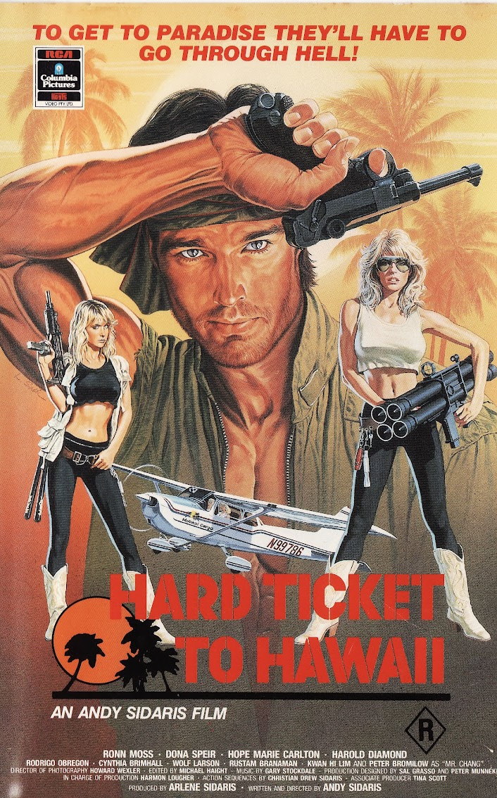 Of course it is the farthest from quality cinema as any person is likely to get, but that doesn’t stop it from being an enjoyable rollercoaster if that's what you’re in the mood for. Even for an action movie the plot is paper thin and largely an excuse for a few modest setpieces. What makes Hard Ticket to Hawaii so enjoyable is the barely concealable enthusiasm, vigor and gusto that clearly went into the production. Andy Sidaris set out to have a good time surrounded with beautiful women, and he did. Half of the time it has the feel of an episode of Magnum, P.I. (1980-1988) but with an overabundance of jiggling naked breasts. What's not to like? Where else are you going to see bodacious babes in skimpy candy-colored bikinis shooting comically oversized guns at caricatural bad guys in the exotic locale of Hawaii? Not even old Andy would be able to recreate the lightning in a bottle he caught with Hard Ticket to Hawaii. That didn't stop him from trying, though.