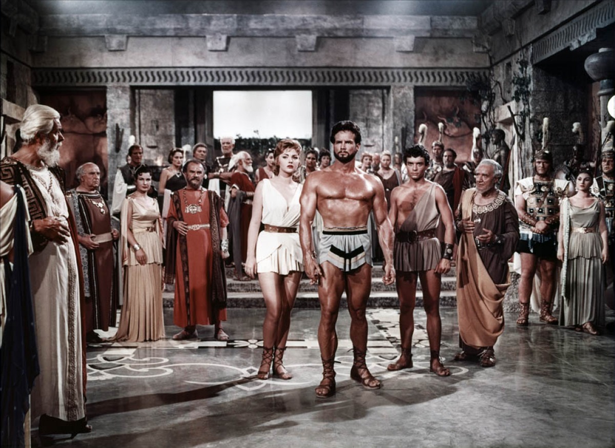 This time around the basis for the screenplay by Ennio De Concini and Pietro Francisci were Sophocles’ Oedipus at Colonus and Aeschylus’ Seven Against Thebes. Returning home from the previous movie’s quest for the Golden Fleece Hercules (Steve Reeves), Iole (Sylva Koscina), Jason (Fabrizio Mionzi), and Ulisses (Gabrielle Antonini) barely have time to recover. On the road to Thebes Hercules is challenged by the giant Antaeus (Primo Carnero) but can’t defeat the behemoth on land. Hercules and Ulisses are asked by Edipus, the dying king of Thebes (Cesare Fantoni), to negotiate a heavily escalated royal succession dispute between his warring sons. En route Hercules is seduced by a harem girl dancing the “Dance of Shiva” leading him to drink the Waters of Forgetfulness from a nearby magic spring, the Lethe. Without memory Hercules becomes a willing captive of the wicked Queen Omphale (Silvya López, as Silvia Lopez) of Lydia. As Hercules finds himself in the gardens of Omphale, unaware that Omphale embalms her playthings once she’s grown tired of them. Ulisses pretends to be Hercules’ deaf-mute servant in order to survive in the Queen’s opulent court, all while figuring out a way to restore Hercules’ memory. Meanwhile Iole is beset by Eteocles (Sergio Fantone) as Polinices (Mimmo Palmara) assails Thebes. Will demigod Hercules be able to both save Thebes from the warring brothers and rescue his wife?
