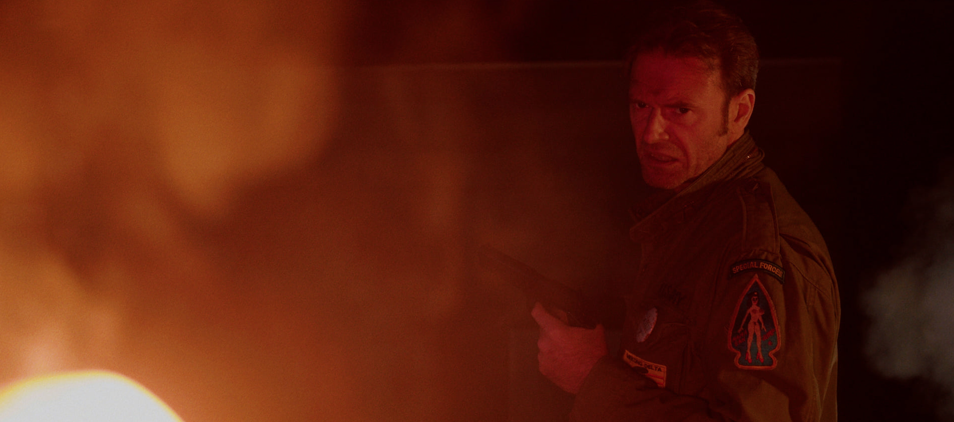 And let it be known: Benjamin knows exactly which buttons to push and which genre sensibilities to cater to. His heroes are very much modeled upon Schwarzenegger, Stallone, and Van Damme’s most enduring characters – yet besides all that rugged, roided up masculinity he, very much in Hong Kong tradition, consistently casts strong and beautiful women, Caucasian and otherwise, in key roles and parts of narrative importance. In Commando Ninja (2018) we had Cécile Fargues, Charlotte Poncin, and young Anaëlle Rincent. Hopkins has Floriane Fizaine. True to form Hopkins is not Fizaine’s story and Philippe Allier very much owns the character he so brilliantly portrayed two years before. Helped in no small part by the fact that Allier looks like a young Michael Biehn he’s Chuck Norris and Jean-Paul Belmondo rolled into one. His Hopkins is smug, casually racist, but that macho bravado belies a deep insecurity and hurt. It makes you wish people like Jean-Pierre Marielle, Serge Sauvion, and/or Howard Vernon were still around to play the elder patriarch of some crime dynasty. Hopkins’ aim is not big explosions, witty quips, and/or funny one-liners. Combes exhibits his versatility by showing that a character study comes just as natural to him as an action flick. In a just world Hopkins would be expanded into a 90-minute feature.
