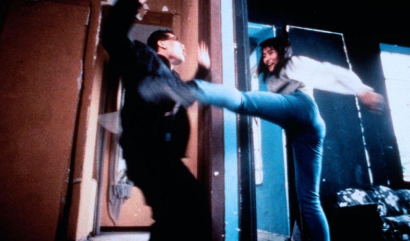 For Cynthia Khan Madam City Hunter was hardly her first venture into action. Khan was born Yang Li-Tsing in Taiwan and was a practitioner of taekwondo and ballet dancing. In 1985 she won a national talent contest run by a Taiwanese television station. Two years later, in 1987, she signed a contract with Hong Kong production company D & B Films Co., Ltd. to replace their star Michelle Yeoh (then still Kahn) in the third installment of the In the Line Of Duty series (1985-1991), a sequel franchise that arose from the box office success of the martial arts actioner Yes, Madam! (1985). At the urging of her contractors Yang Li-Tsing was given an Anglicized alias, in this case a portmanteau of her two favorite Hong Kong martial arts inspirations and D & B favorites: Cynthia Rothrock and Michelle Kahn (later Yeoh). Thus came to be Cynthia Kahn, a reliable second-tier performer who made up her lack of acting talent in sheer athleticism, acrobacy and elegance of movement. As Michelle Yeoh’s star rose with appearances in the Bond episode Tomorrow Never Dies (1997) and the period wuxia epic Crouching Tiger, Hidden Dragon (2000) Cynthia Khan was summarily (and unjustly) relegated to obscurity.