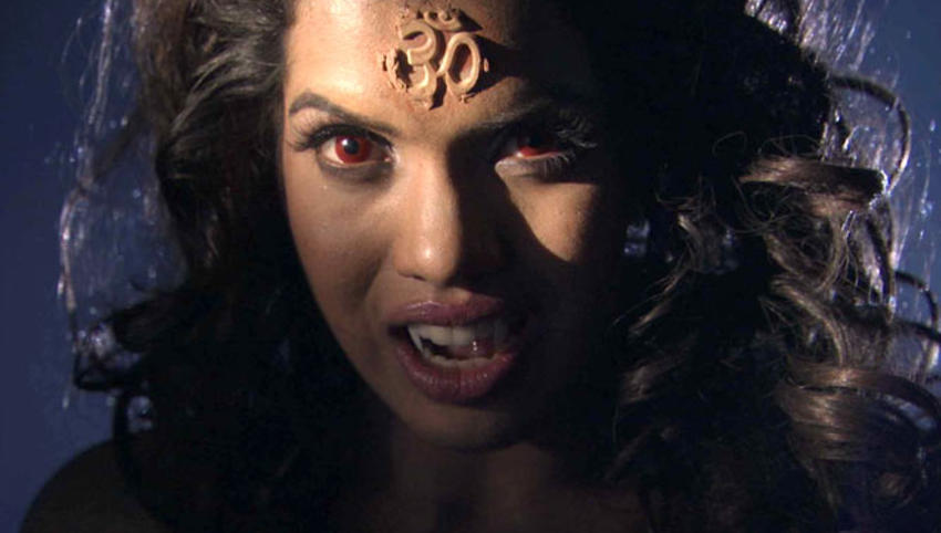 All Christian iconography has been replaced by their Indian counterparts, and the sacred Om (ॐ) symbol features prominently in several scenes. The vampires here will be familiar to European - and American audiences and for a change they bear no meaningful resemblance to the bhoot or bhut of popular Indian folklore. The bhoot is far closer to the Chinese ghost than to the Hungarian-Romanian nosferatu that Roushika Reikhi portrays here. The most interesting thing about Reikhi’s character is that they decided to name her Kapalika. The Kāpālikas (“skull bearers”) were a small sect of Shaivite (devotees of Shiva) ascetics prominent in India from the 8th through the 13th century. They differed from the more respectable Brahmin household of the Saiva Siddhanta in that they engaged in esoteric rituals including meat-eating, intoxication, and sometimes cannibalism. It’s exactly the kind of thing you’d expect of a Hindi horror production, even in the modern age, to be rife with religious superstition.