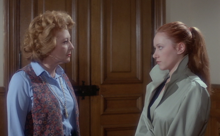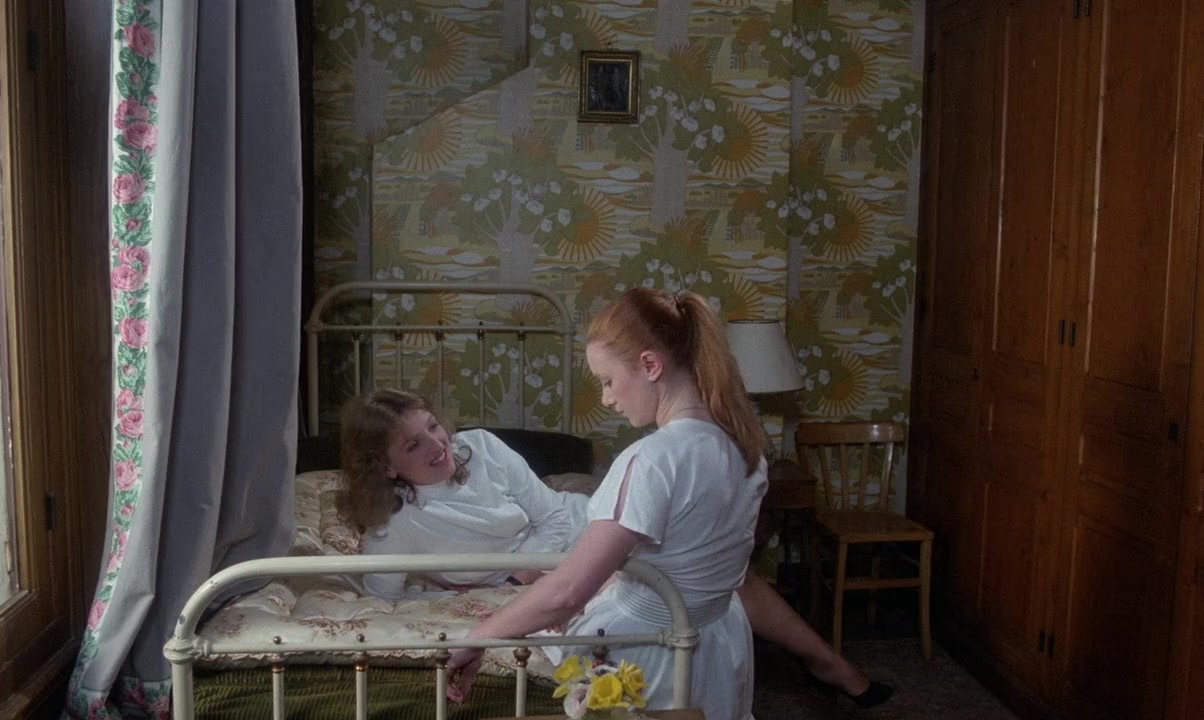 After an 8-month dry spell Martine (Isabelle Goguey) has sorted her life out. She will soon be starting employment as a nurse-governess at Doux Séjour (Soft Sojourn, for some reason changed to the more grim sounding Deadlock House in the international English version), a stately manor and hospice de vieillards somewhere in the pastoral French environs, and for that reason breaks up with her boyfriend of some time Serge (Michel Duchezeau) through a hasty writ. Reporting for duty on her first day Martine makes her acquaintance with groundskeeper Flavien (Michel Flavius) as well as iron-fisted châtelaine and administrator Hélène Robert (Betty Beckers), in that order. Madame Hélène is clearly frustrated (and makes no effort to hide it) that Martine taking office before her colleague’s two months are up is not done and she’s thoroughly scolded for just that. Martine soon befriends current (and beleaguered) nurse Nicole Clément (Charlotte de Turckheim) who, despite experiencing opposition from her superiors, has no intention of leaving her position. Les pensionnaires sont the usual bunch of eccentrics, loonies, and lonely but there’s no denying that they’re remarkably well-preserved for their advanced age. One day Martine is told that Nicole picked up and left and that a maniac known as the Golden Needle Killer is on the prowl. As she starts investigating Martine discovers that things at Doux Séjour aren’t what they seem.