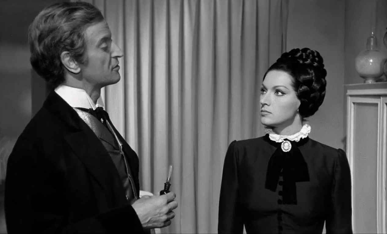Having tortured and killed both adulterers Arrowsmith cuts out and preserves their hearts, disposing of the rest of them in the incinerator and dumping their ashes into the pot of his favorite houseplant. In a daring experiment he transfuses Muriel’s electrically preserved blood into his cadaverous maid (and assistant) Solange (Helga Liné, as Helga Line) instantly restoring her appearance to that of a twenty-year-old. What Arrowsmith soon comes to realize is that Muriel has left her wealth not to him, but to her blonde sister Jenny (Barbara Steele, as Barbara Steel), who has a long history of mental instability and spent most of her adolescent life locked away in an unspecified insane asylum. Being the reptilian creep that he is, Arrowsmith promptly invites Jenny to Castle Hampton for an extended stay, and immediately starts courting her. Jenny eventually falls for his advances and the courtship ends in marriage.