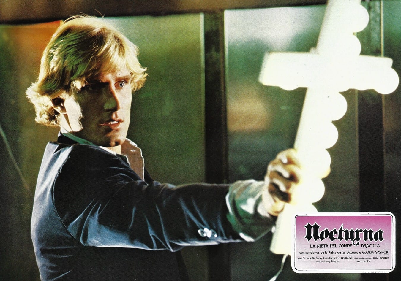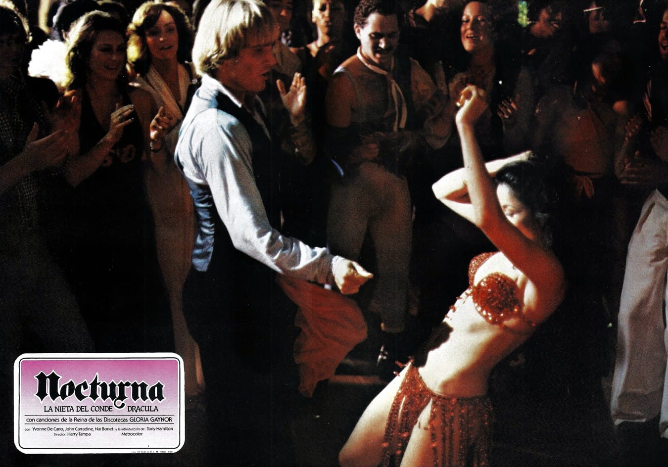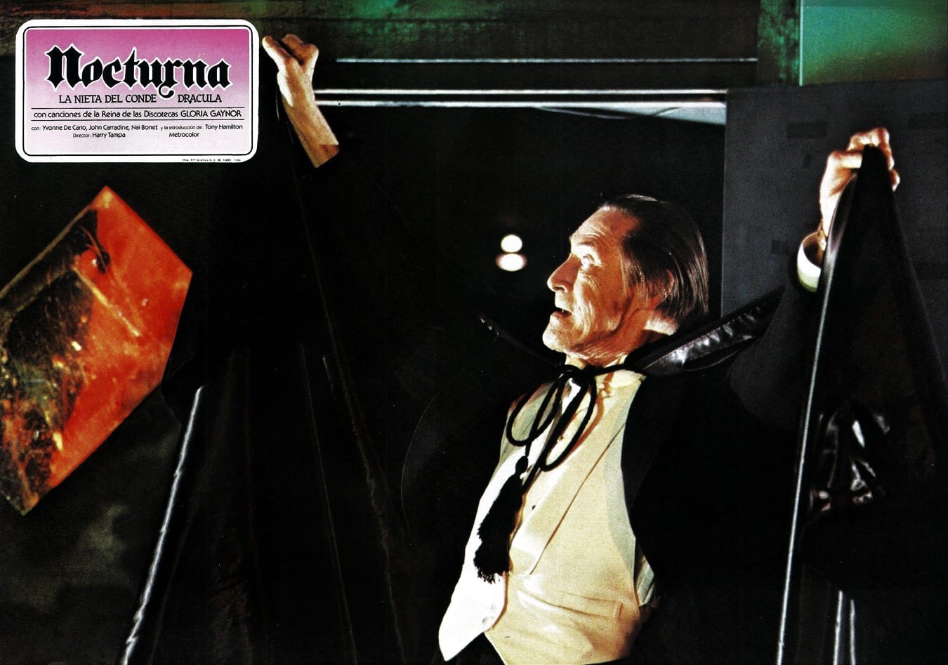 Transylvania, 1979. Count Dracula (John Carradine) finds himself in financial dire straits and on the brink of ruin. To pay for overdue taxes the old Count has opted to convert his castle into a hotel. He has left the day-to-day operations of running the resort to his 126-year-old granddaughter Nocturna (Nai Bonet) who he also has left in charge of booking entertainment for the establishment. This particular evening up-and-coming New York disco sensations Moment Of Truth are slated to audition for a multi-night engagement at The Claret Room. Almost as soon as she lays eyes upon him Nocturna is smitten with guitarist Jimmy (Antony Hamilton) and she soon starts to question her immortality. A brief and steamy courtship ensues, and before long Nocturna and Jimmy run off to New York. The count orders Theodore (Theodore Gottlieb, as Brother Theodore), a lycanthrope with an unhealthy interest in his employer’s granddaughter, to intercept and return Nocturna to her ancestral home in Transylvania. Meanwhile, Nocturna connects with her grandfather’s old flame Jugulia Vein (Yvonne De Carlo) and they embark on a wondrous journey through the underbelly of the Big Apple. In short order Nocturna and the gang encounter black pimp RH Factor (Sy Richardson) who moonlights as a dealer of designer-blood and runs a brothel out of his massage parlor The Tricky Hickey, and they attend a meeting of the BSA (Blood Suckers of America), a vampire rights activism group holding debates on the future of the species and their integration/acceptance into mainstream society. In the dance temple Starship: Discovery 1 Jimmy is tempted by Brenda (Monica Tidwell) for a dance, but he’s waiting for Nocturna. Things come to a head when Dracula confronts Nocturna in the dance hall and she convinces her grandfather of the merits of humanity, and of mortal love, by engaging in an extensive dance routine.