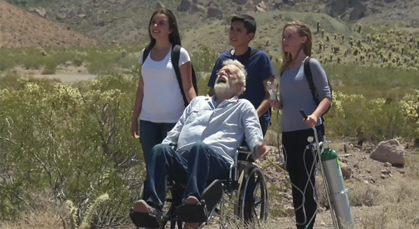 Meanwhile, a boy (Abraham Rodriguez) and a girl (Taylor Johnson) who share the common interest of music and astronomy have discovered alien activity. They have alerted their aging and ailing professor (James D. Smith) to their plans to travel deep into the Nevada desert to pinpoint the location. While that is happening Thgil uses his vast intellect to insinuate himself into high society cocktail parties where he erases presidents of banks (Adriane McLean), insurance (Brad Thomte), and media (Judy Thomas) out of existence. He then moves on to senators (Charles Updergrove) and corporate execs (Phil Graviet, and John Marchitti). He then overtakes an international press center by disintegrating its news anchors (Nicole Spitale, Steve Brito, and Audra Wilson) and delivers a condemning speech to the remaining survivors on Earth. Kim has gone missing leaving Amanda a quivering husk. Thgil finds Kim in a cave where she’s being threatened at gunpoint by a deranged veteran (Jason James). Thgil cures the veteran by simply saying, “You are now free… of PTSD.” As Thgil prepares to depart for his homeworld Amanda and Kim are shot by Amanda’s abusive ex-husband (Mike Kelly). He resurrects both and erases the perpetrator out of existence. Corruption has been ended, the guilty have been punished, and all is right with the world again…