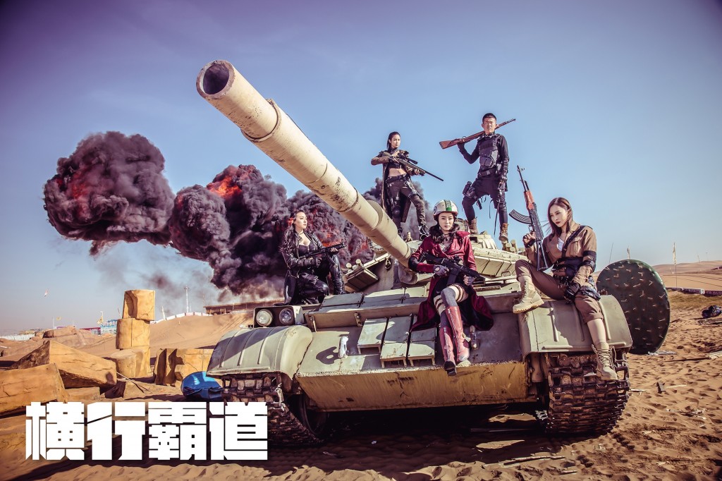 Everything comes full circle. What is Run Amuck if not a bit of Mainland China straight-to-VOD action fluff reimagining Battle Royale (2000) as a fictional virtual reality e-sports event that is one part eXistenZ (1999) and one part The Expendables (2010-2014)? To its everlasting credit Run Amuck goes full-on with the videogame allusions as the different contestants can be seen scrambling for ammo, power-ups, and as the game progresses the girls modify their avatars and their weapons, and level up their skills by farming for experience points. Each girl displays a specific talent and if they learn to work together and combine their talents they will become undefeatable. At one point Zhang Ying-Xun can be found camping, but he’s summarily blown up by his bumbling idiot team members for his infraction. Thankfully there’s no sewer level but the girls either run into or lay traps themselves. Fallen contestants turn into loot boxes and when these lie out in the open surely there must be enemies ahead. Of course there’s a vehicular combat level and to get to a rendez-vous point the girls not only need to ward off swarming enemies but have to cross the bombing area connecting the two. To the surprise of absolutely nobody Wang Jia-Nan is trapped by her former lover prompting Fu Xiao-Fei to manifest incredible bravery to save any and all of her teammates. The final duel involves (what else?) a tank. As convention dictates there’s a bickering comic relief commentator duo, ostensibly modeled after Junior Bruce from Death Race 2000 (1975). The girls (Zhang Hao-Yue, Chen Yu-Wei, and Yuan Ling-Yan to a lesser degree) in true Sino tradition brandish vertigo-inducing cleavage and fashionable (half) cornrow haircuts (Chen Yu-Wei and Monroe Zhang Meng-Lu).