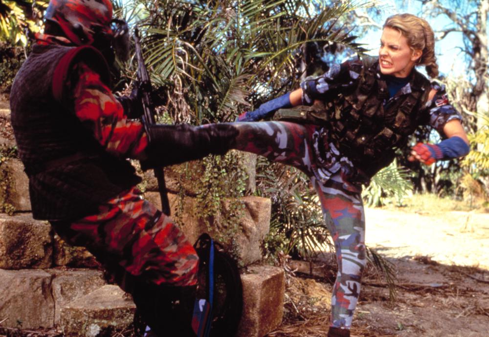Jean-Claude van Damme seems to be under the mistaken impression that Street Fighter is a serious project, which is understandable since he declined a role in Mortal Kombat (1995) over this. Kylie Minogue and Ming-Na Wen obviously can’t hold a candle to Cynthia Rothrock, Brigitte Lin, Yukari Oshima, or Cynthia Khan as they neither of them has that sort of balletic grace, and vast martial arts skill set. What doesn’t help matters either is that the fight choreography focuses on squarely brawn and not on acrobatic elegance and rhythm. The fights in Street Fighter make the average Cirio H. Santiago topless kickboxing movie or Godfrey Ho martial arts epic look legitimate. Van Damme, as a trained martial artist, fares better for obvious reasons but his acting chops haven’t improved much, or at all, since Bloodsport (1988) and Cyborg (1989). Kylie Minogue would truly hit rock bottom with her appearance in the Pauly Shore comedy Bio-Dome (1996) two years down the line. Those hoping to see Minogue sporting her signature kaki bathing suit, red cap, combat boots and schoolgirl ponytails better look elsewhere. At least Mortal Kombat (1995) had Puerto-Rican beauty Talisa Soto in her leather figure-fitting corset. There are enough explosions, fisticuffs, pseudo-witty one-liners and bone-crushing takedowns to satisfy the average action fan. A much bigger problem is that a movie called Street Fighter constantly forces its purported heroes into gunfights, chases, and any and every other situation besides a street fight.