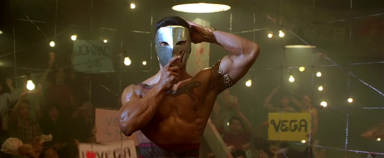 Bison, with his two generals Dee Jay (Miguel A. Núñez Jr.), a computer technician, and Russian wrestler Zangief (Andrew Bryniarski) in tow, conducts Skinnerian behavioural programming straight out of Stanley Kubrick’s adaptation of the Anthony Burgess novel A Clockwork Orange (1971) on imprisoned soldier Carlos “Charlie” Blanka (Robert Mammone), a composit of Blanka from Street Fighter 2, and Charlie Nash, Guile’s deceased friend from Street Fighter Alpha. Leading the experiment, against his will, is Dr. Dhalsim (Roshan Seth). In cahoots with Bison are weapon smuggler and crimelord Victor Sagat (Wes Studi) and his prize fighter/torero Vega (Jay Tavere), the latter of whom was about to face con men Ken (Damian Chapa) and Ryu (Byron Mann) in the fighting arena. Street Fighter recreates all the game’s iconic fighters and most of their costumes (be it in slightly altered form), but instead of pitting them against each other, the Steven E. de Souza screenplay adheres to action movie conventions.