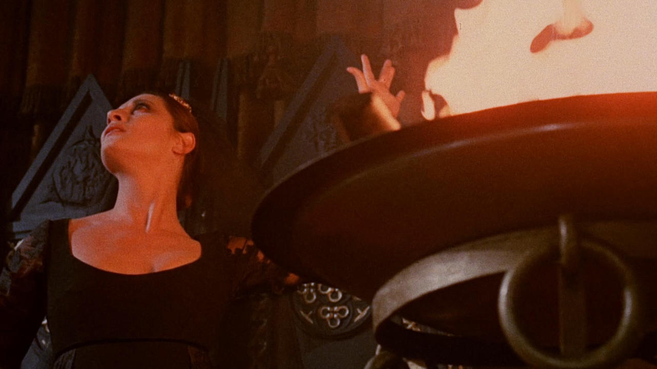 De Vries’ majestic castle is inhabited not only by the Countess, but also her loyal servant Lara (Esmeralda Barros), a Mysterious Man (Gengher Gatti, as Alexander Getty), and the monstrous Vampire Monster (Xiro Papas, as Ciro Papas). While still pursuing Tanya, libertine Franz falls for the considerable charms of Countess de Vries, who every five decades, on the Night Of the Virgin Moon uses her Wagnerian magic ring to summon virgins to her castle. In Bathory fashion she bathes in their blood to retain her youth and immortality in a pact forged with the dark lord himself. De Vries seduces Franz and eventually turns him into a vampire. In a black mass wedding meant to “consecrate their union” Karl, who has followed his brother to the Carpathian mountains, must now face the horror of his malefic undead brother, the fang-bearing Countess, and her legion of evil servants.