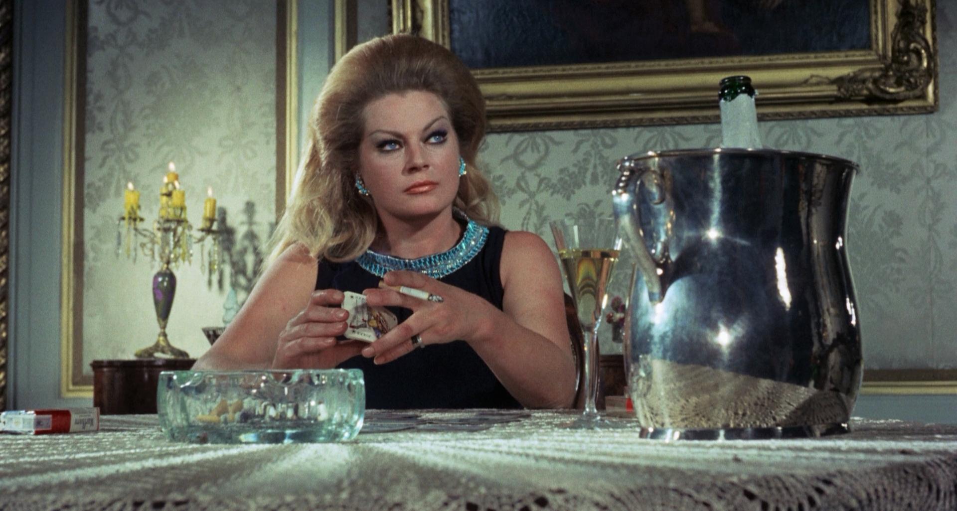 Where else are you going to see Anita Ekberg, Rosalba Neri, Barbara Bouchet, Evelyne Kraft, Piera Viotti, and Flavia Keyt together? For good measure Humphrey Bogart imitator Robert Sacchi and Jess Franco regular Howard Vernon are also on hand. By the time Anita Ekberg came to do The French Sex Murders she was a long way from La Dolce Vita (1960), the pulpy excess of the Terence Young Arabian Nights romp Zarak (1956) (wherein she performed a tantalizing bellydance) and the grimey, decaying atmosphere from Amando de Ossorio’s superb Malenka, the Vampire’s Niece (1969). Former peplum and spaghetti western fixture Rosalba Neri was reinventing herself as a sex kitten with roles in Top Sensation (1969), Lady Frankenstein (1971), The Beast Kills In Cold Blood (1971), and The Devil’s Wedding Night (1973). German-born Barbara Bouchet started out as a model and tried to break into Hollywood for a few years. After playing Miss Moneypenny in the Val Guest James Bond spoof Casino Royale (1967) and appearing in the Star Trek (1966-1969) season two episode “By Any Other Name” in 1968 Bouchet moved to Italy. There she became a fixture in commedia sexy all’Italiana, giallo murder mysteries and poliziotteschi. In that capacity she appeared in diverse offerings as The Man with Icy Eyes (1971), Black Belly Of the Tarantula (1971), Amuck (1972) (with Neri), The Red Queen Kills Seven Times (1972), Don’t Torture A Duckling (1972) and Wife on Vacation… Lover in Town (1980).