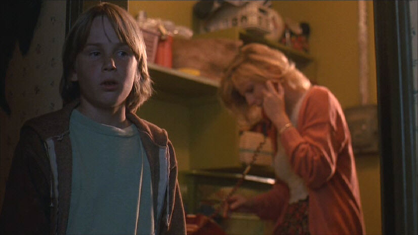 Jobe is constantly at the receiving end of abuse from his supposed legal guardian Father Francis McKeen (Jeremy Slate) and gas station attendant Jake Simpson (John Laughlin). The only one really looking out for his best interests is Francis’ semi-alcoholic gardener brother Terry (Geoffrey Lewis). He has a friend in teenager Peter Parkette (Austin O’Brien), Angelo’s next-door neighbor who often comes over to his laboratory to play with the VR equipment. Peter’s mother Carla (Rosalee Mayeux) is sweet on him, if only to escape her suburban nightmare with abusive husband Harold (Ray Lykins). Platinum blonde poor white trash beauty queen Marnie Burke (Jenny Wright) has eyes for Jobe, but (so far) he has been oblivious to her advances. Larry’s treatment on Jobe proves succesful seeing him finally stand up to his abusers and win the affections of Marnie – all while his intellligence continues to boom exponentially. Once the resources in his basement laboratory have been exhausted Angelo moves Jobe into VSI’s spinning aerotrim gyroscope where the software is far more advanced and radical. Soon Jobe becomes too powerful of a mental force for even Angelo to contain and The Shop deploys para-military forces to stop him. Attaining superhuman intelligence Jobe rids himself of his frail mortal form by downloading his essence into the VSI mainframe. In cyberspace he declares that every telephone on the planet ringing simultaneously will foretell his ascent into virtual godhood and digital immortality.