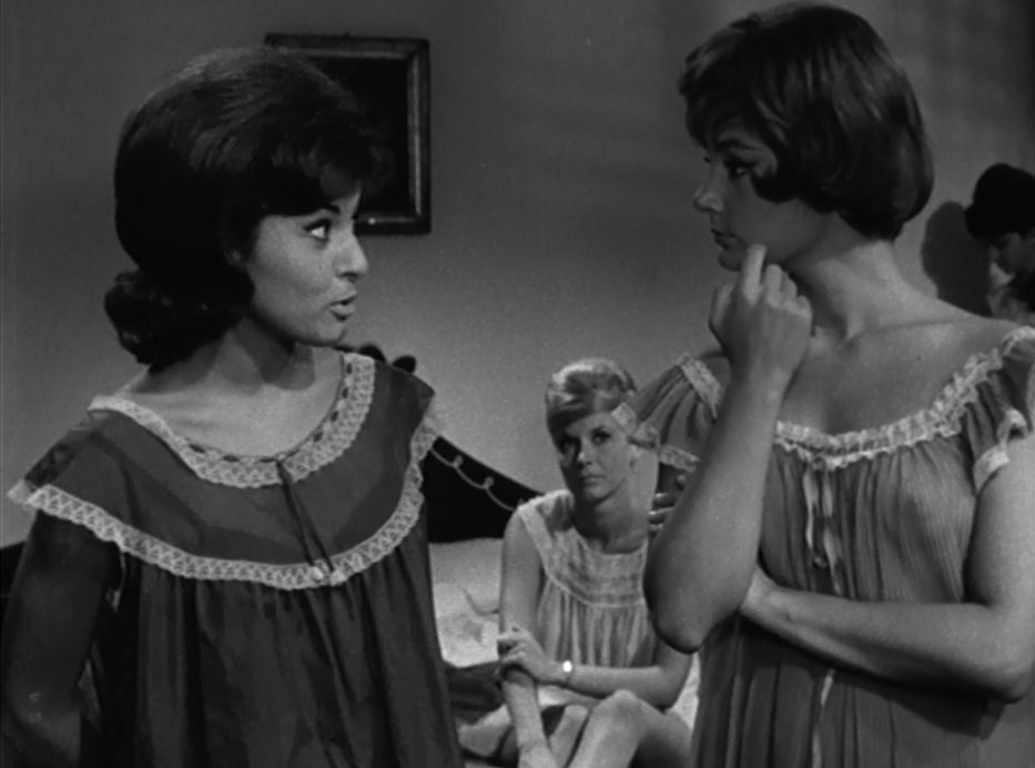 The most recognizable name of the cast is Walter Brandi, who already delved into similar territory with The Vampire and the Ballerina (1960) and would do so again with The Monster of the Opera (1964) and 5 Graves For A Medium (1965). Lyla Rocco, who looks like a young Soledad Miranda, debuted in the Dino de Laurentiis produced melodrama Anna (1951) that had a young Sophia Loren in a bit part. Rocco appeared in over thirty productions, mostly French and Italian comedies and dramas, and The Playgirls and the Vampire arrived near the end of her career. Marisa Quattrini starred in both The Vampire and the Ballerina (1960) and The Playgirls and the Vampire. Here Quattrini was given the dignity of a name part and dialog. Corinne Fontaine debuted in The Playgirls and the Vampire and her biggest role was an uncredited part in the fumetti Barbarella (1968). Erika Dicenta largely exists by grace of her platinum blonde hair and bountiful bust. No wonder she was given a modest strip routine to make the most of her very limited appearance. Tilde Damiani was one of the Amazons (along with Giorgia Moll, Daniella Rocca and Mariangela Giordano) in the peplum Colossus and the Amazons (1960), a likely precursor to Terence Young’s breasts-and-games spectacular The Amazons (1973). In a blitz career that spanned a mere 4 years The Playgirls and the Vampire was the final movie for the leggy Maria Giovannini and it probably explains why Giovannini’s part is the only to require any nudity.