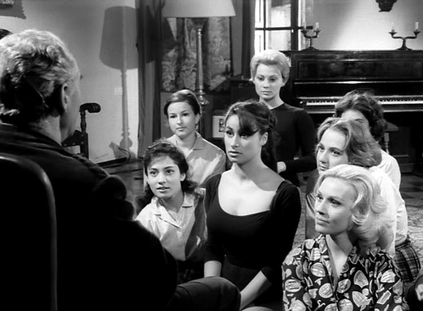In the castle they are greeted by the aristocratic countess Alda (María Luisa Rolando), a woman from another age decked out in a sixteenth century dress and untouched by the passage of time. In the castle halls the couples are drawn to an ominous portrait of what Alda refers to as her 400 year old ancestress. The countess and her servant Herman (Walter Brandi) offer their guests food and shelter until they can continue their journey. Alda and Herman both take an interest in the group and ensure that the ballerinas and Luca each make their seperate returns to the castle. As Luca becomes increasingly spellbinded by the alluring countess, Alda confides in him that she is, and has been, in fact Herman’s prisoner for the past several hundred years. Many a moon ago Herman vampirized her and the two have been living a symbiotic slave and master relation since. Alda drains Herman’s blood to retain her youth and vitality, which in turn forces him to feed on the pure blood of innocent maidens to hide his monstrous appearance resulting from the countess’ sanguine feeding habits. Soon Luisa and Francesca are stalked by an eerie shadowy figure haunting the bowels of the castle. As the group comes to realize they are being preyed upon by a vampire and Luca comes to grips with the dire hopelessness of Alda’s situation, it’s up to him to stop the menace.