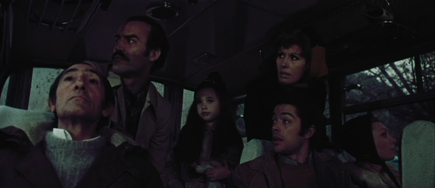 A group of seven weary passengers – Ernesto (Gaspar 'Indio' González, as Indio González), Godó (Luis Ciges), César (David Aller) and Alma (Dyanik Zurakowska, as Dianik Zurakowska) as well as a family consisting of Raquel (Charo Soriano), Marcos (Manuel de Blas) and their eight-year-old daughter Violeta (Sarita Gil) – en route to an aristocratic family in Bojoni in the Carpathian mountains in Hungary (and not Romania where Transylvania actually is) where they have been contracted for employment. The passengers find themselves stranded in the middle of nowhere after their bus driver (L. Villena) suddenly collapses from a heart attack and dies momentarily after. As a man of action Ernesto takes the wheel and opines that the best solution is to travel to the nearby village of Tolnai, a mere 10 kilometres away. After some much-needed food and rest they can then continue their journey to Bojoni, 110 kilometres from their current whereabouts, and still be on time to commence working. In the mysteriously abandoned Tolnai the group takes refuge in the local tavern. There they run into American tourist Luis (Jack Taylor) who’s also mystified by the complete absence of any inhabitants in the village of Tolnai, a ghost town by all accounts. As everybody retreats to their lodgings for the night, Ernesto decides to stay on guard.