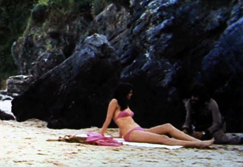After a particularly difficult breakup with his longtime girlfriend Carla (Mónica Randall) photojournalist Mario (Cihangir Gaffari, as John Caffari) calls up his employer demanding his vacation days be revoked and he be given an, or really any, assignment. He’s given the order to photograph the mysterious famed The Witches Mountain in the Cantabrian Mountains in Asturias in the north of Spain. He takes a stroll around Ribadesella coast (most likely Playa de la Atalaya) where from a hillside he spots Delia (Patty Shepard) sunbathing (topless, of course). He strikes up conversation learning that Delia is a freelance writer and on a whim he invites her on his planned excursion. Delia has to pick up a few things from her house and while waiting outside Mario hears sinister choral chants. Delia shrugs it off and says he must be imagining things. As the shades of night descend they take up lodging in an ancient, dilapidated inn run by a semi-deaf, half mad local (Víctor Israel) who spouts ominous cryptic warnings about folklore of a coven of witches having taken up residence and warns them to stay far from the cursed mountain. The two push on regardless and the next day they’re making their way up to the next town. Mario’s car is suddenly stolen by an unseen figure and the two are stranded.