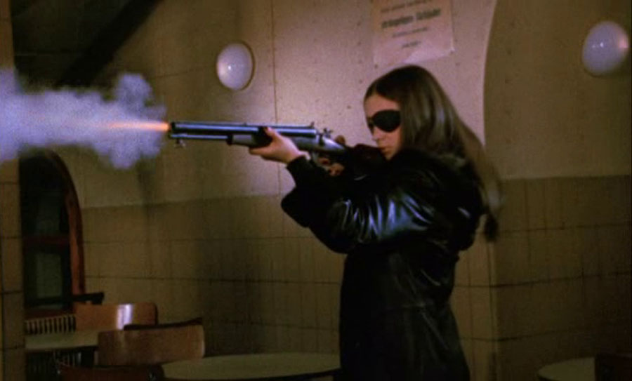 When she comes to Tony is not happy with her. He takes a scalpel to her face and gouges out her eye. Madeleine, disfigured and forced to wear an eyepatch, is called The Pirate, and continues to service clients. She befriends Sally (Solveig Andersson) and the two quickly bond over their shared experience of bondage and servitude in the brothel. With funds amassing Madeleine starts planning an elaborate revenge scheme. She buys a car and start taking driving lessons, learning about firearms, explosives, and martial arts. As the days turn into weeks Madeleine becomes something of a ghost at the brothel. Her mind not with the clients, her body becoming stronger. She quietly bides her time waiting for all different pieces to fall into place. When she returns home one day and discovers that Sally, her only friend through her hellish ordeal, has been murdered Madeleine realizes that now is the time to spring her long-desired (and much over-due) revenge plan into action. As Tony learns about Madeleine’s intense training regime he immediately orders two hitmen to eliminate his rogue asset. Things come to a violent and bloody head when Madeleine, now sporting a trenchcoat and wielding a sawn-off shotgun, exacts her vengeance. In short order the two hitmen, each and every last man that wronged her – and finally… Tony will pay. And the price is blood. For all the pain, humiliation, and degradation he has visited upon her.
